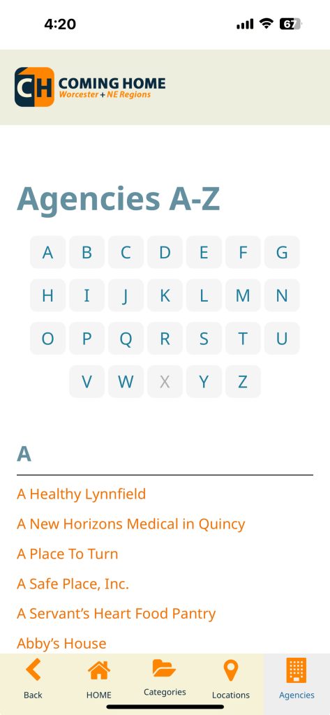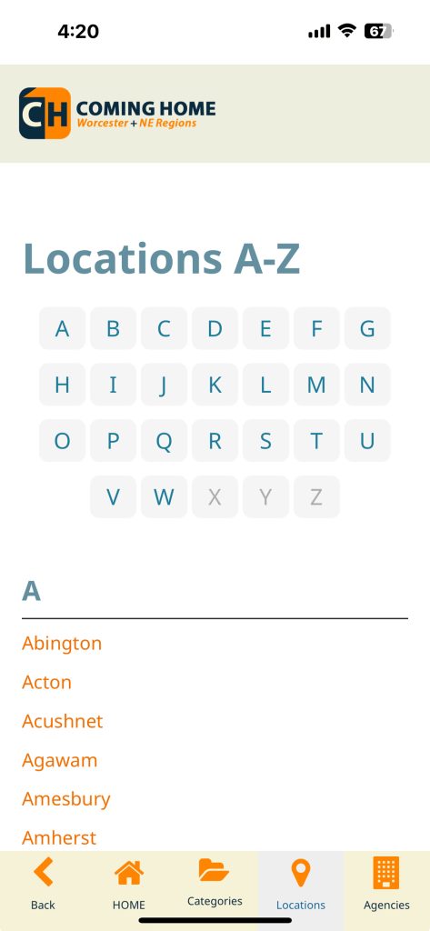 The Coming Home Worcester + NE App is not a government agency and does not represent any local, state, or federal government entity.